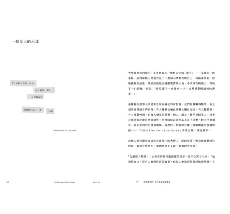 Peter Su以温柔且细腻的笔触,捕捉人性深处复杂的情感,带领读者走进一个错综复杂却又充满疗癒的故事世界。这本书告诉我们,过去的伤痕并非终点,而是让我们学会重新看见光的起点。