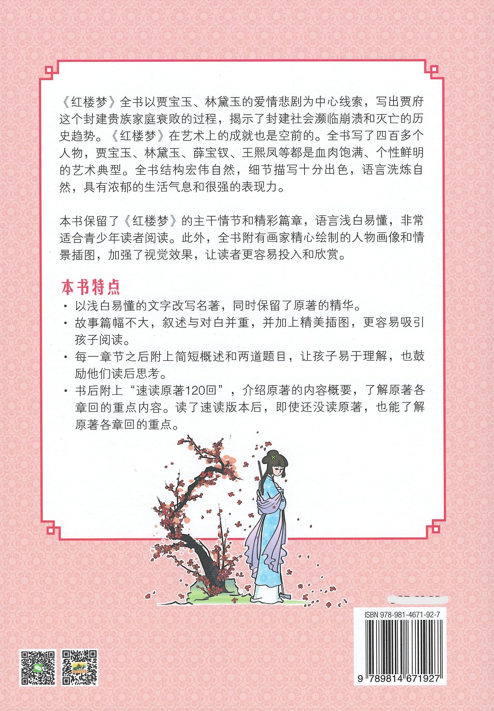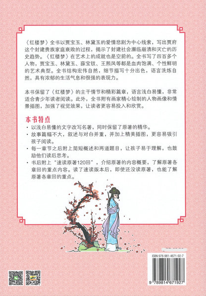 本书保留了《红楼梦》的主干情节和精彩篇章,语言浅白易懂,非常适合青少年读者阅读。此外,全书附有画家提出了相似的人物肖像和场景插图,加强了视觉效果,让读者更容易投入和欣赏。
