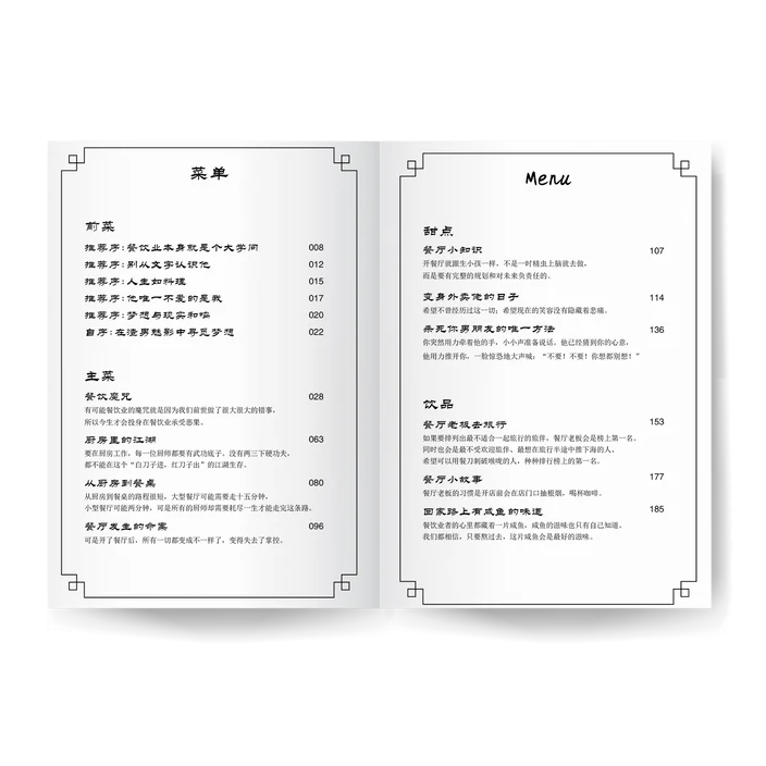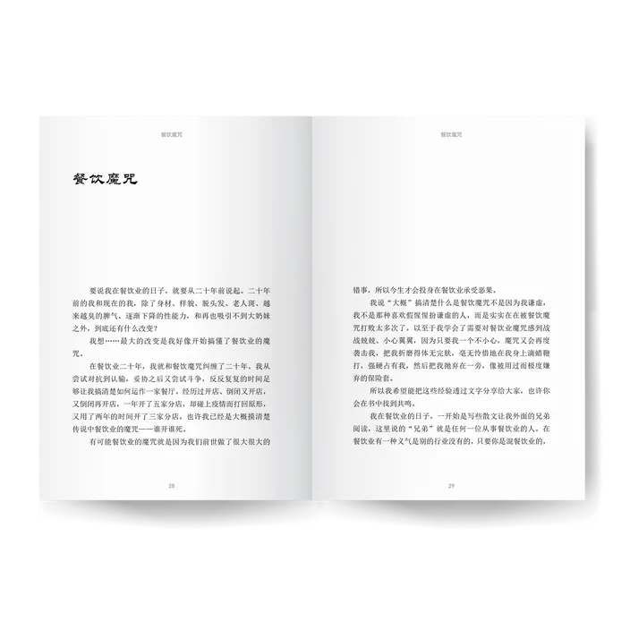 这本书写给所有在餐饮业奋斗的人,也写给所有对餐饮业有兴趣的人。这里边不只是分享我在餐饮业的喜悲,更是分享我这些年来的生活。希望看了这本书的你,能明白开餐厅就跟生小孩一样,不是一时精虫上脑就去做,而是要有完整的规划和对未来负责任。