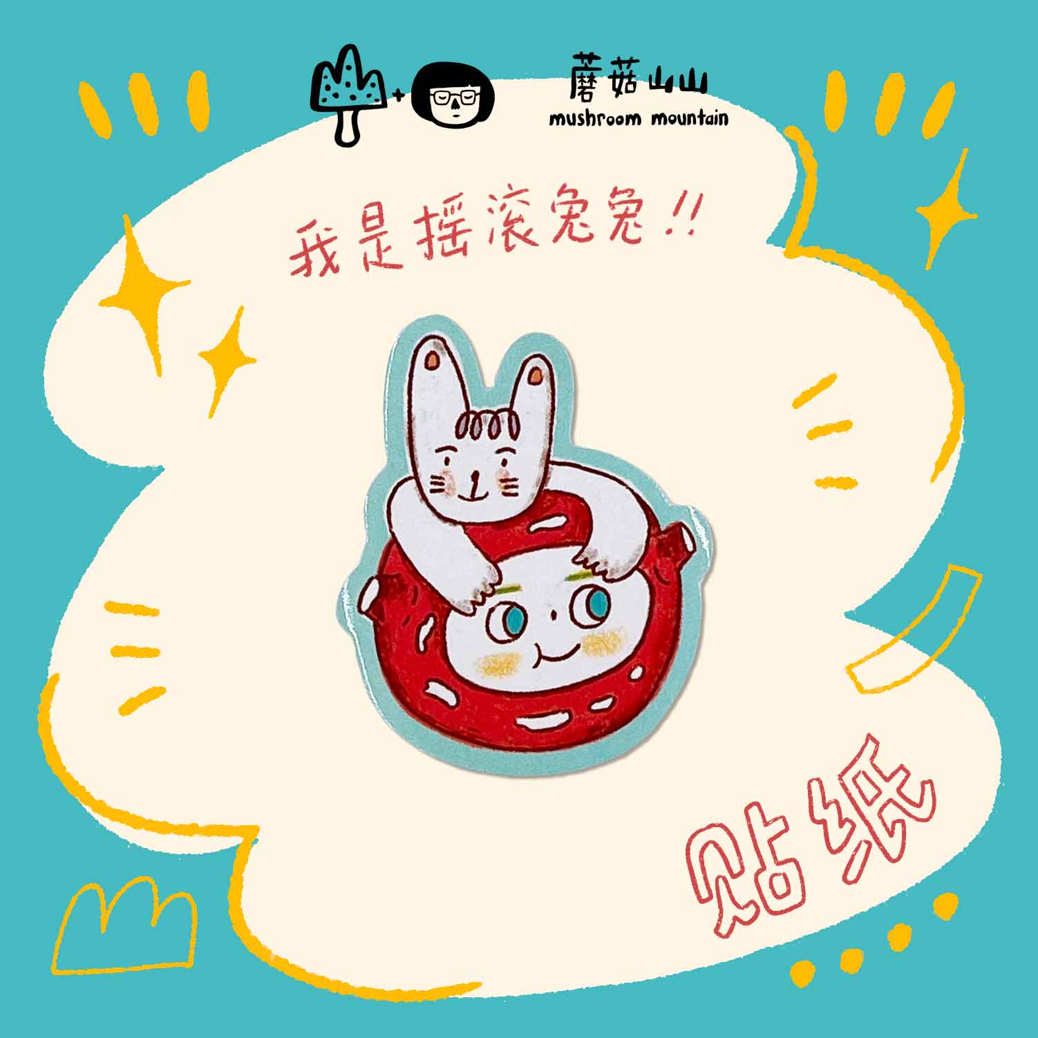 防水亮光贴纸 - 摇滚兔和他的朋友